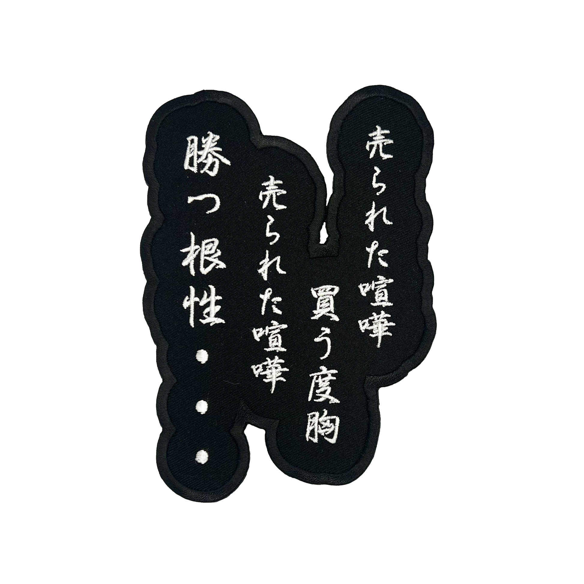 TOKKOUでの代名詞である「売られた喧嘩買う度胸 売られた喧嘩かつ根性」のワッペン。裏面には粘着剤が付いているので、お気に入りの洋服やバッグなどにアイロンなどで貼り付けることができます。