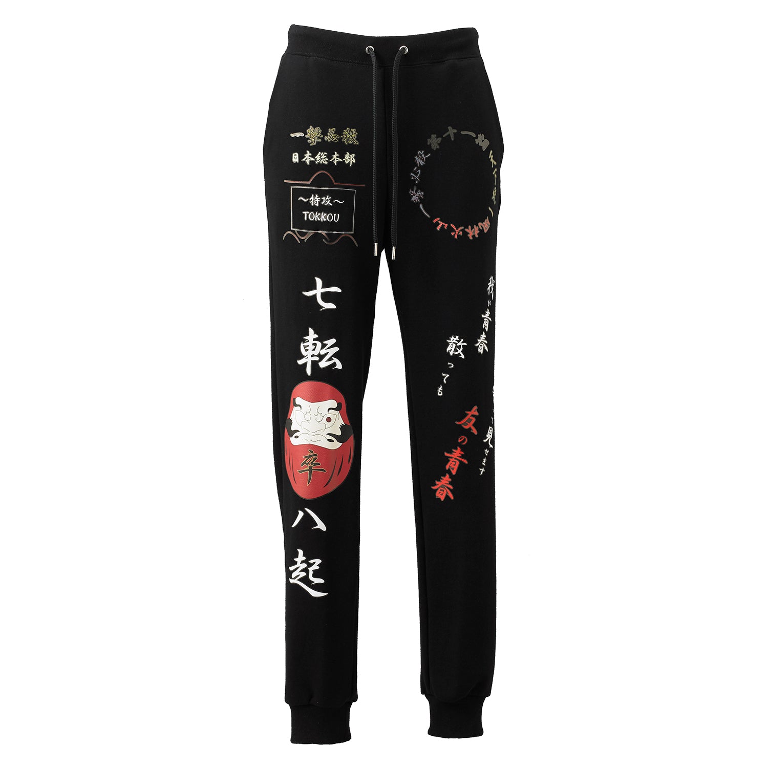 度詰裏毛を使用したTOKKOUの定番スウェットパンツ。大胆なダルマを用いた「七転び八起き」シリーズのプリントをした商品。